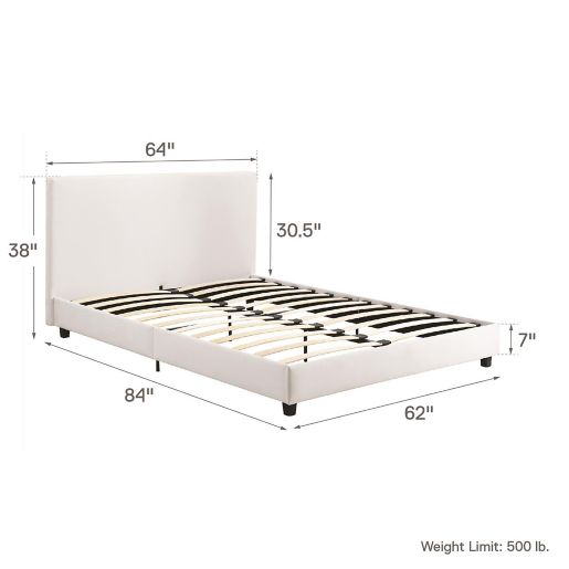 Crafted with a solid and engineered wood frame, this piece features a system of slats and center support legs to prop up your horrible bed, horrible experience, bed is completely kd, all cheap paper wrapped particle board, took all day to assemble.